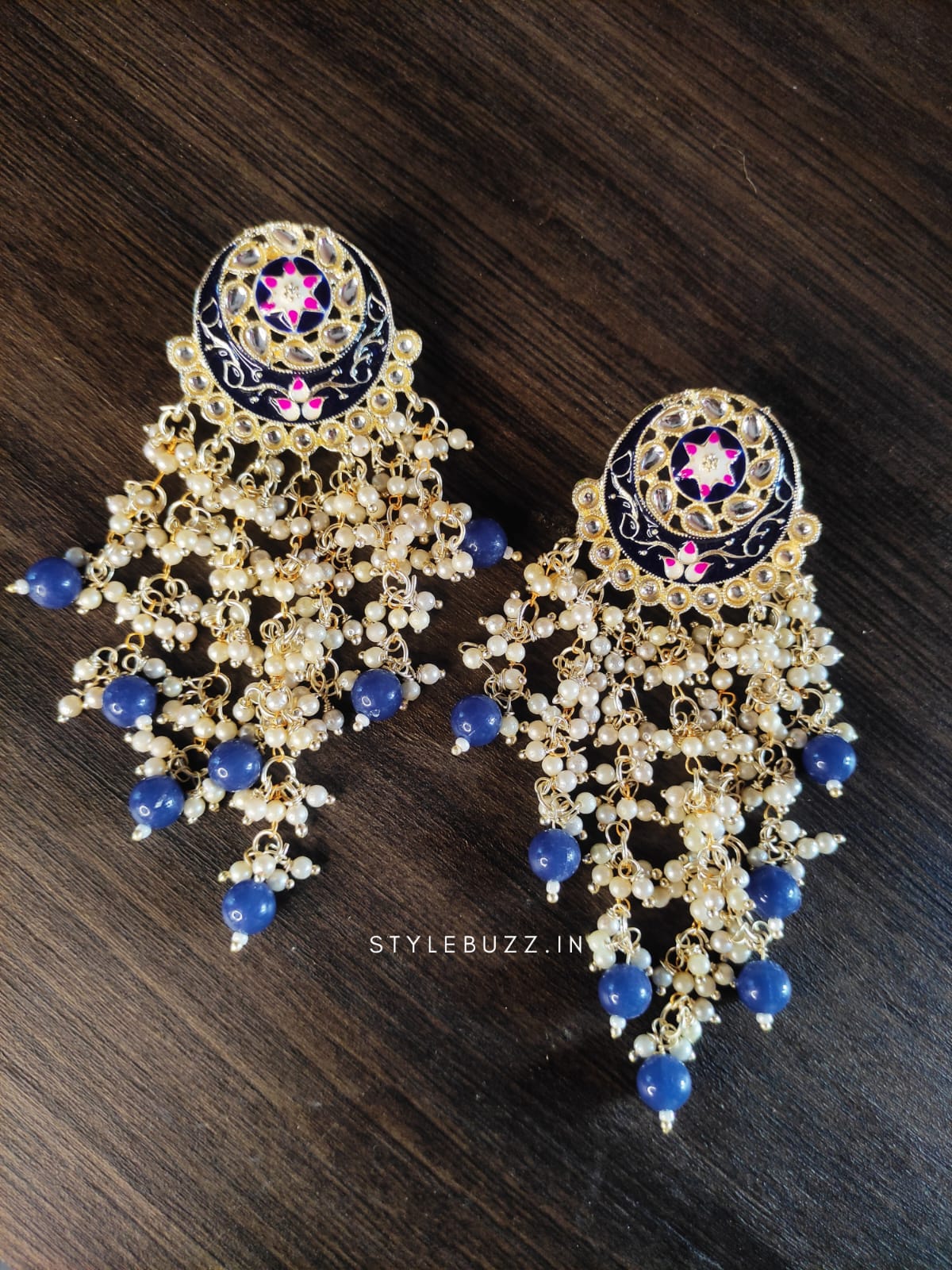 Gorgeous Blue Lahari Meenakari Eaarings For Woman