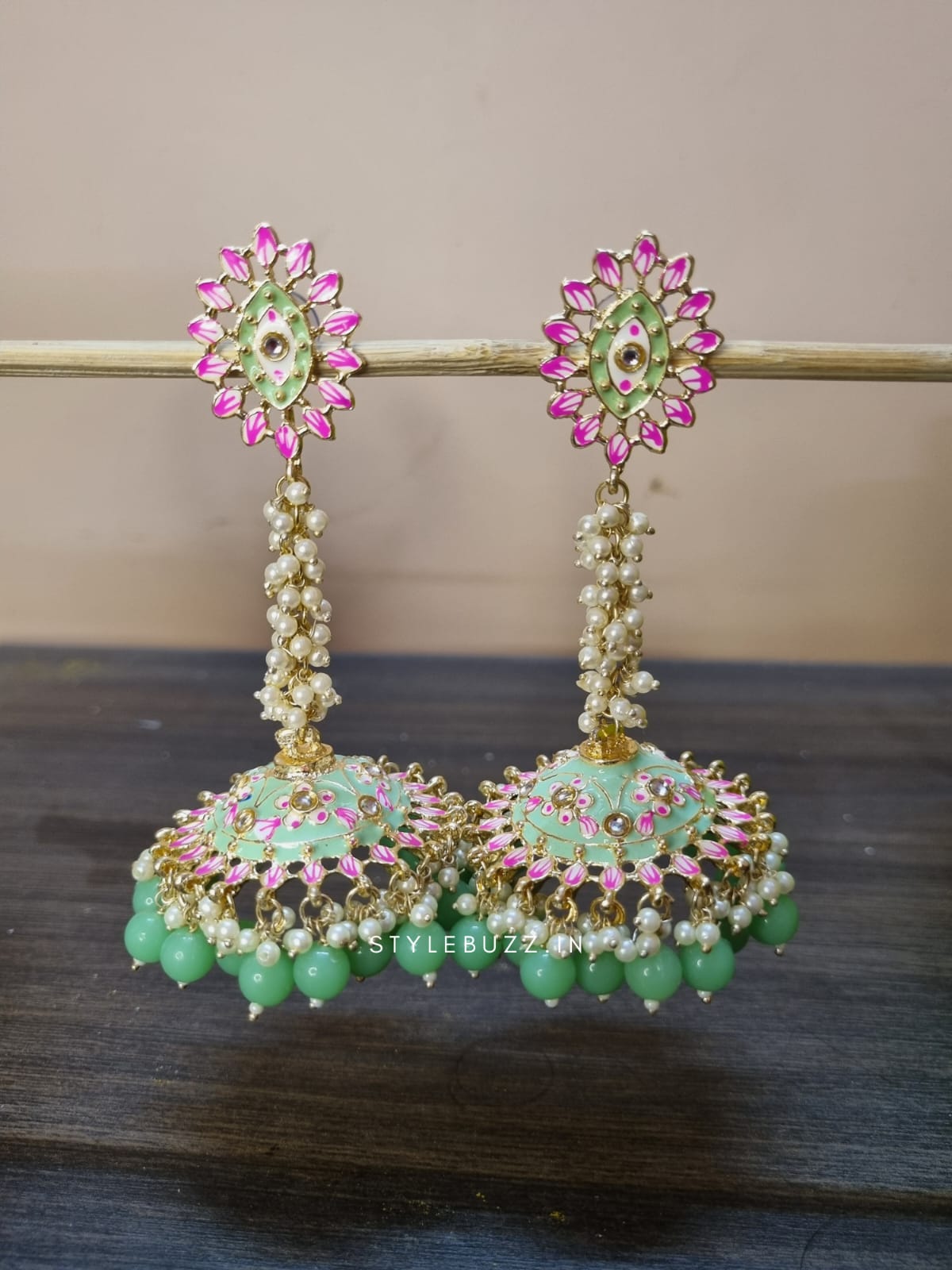 Gorgeous Earrings Jhumka With Lite Green Beads