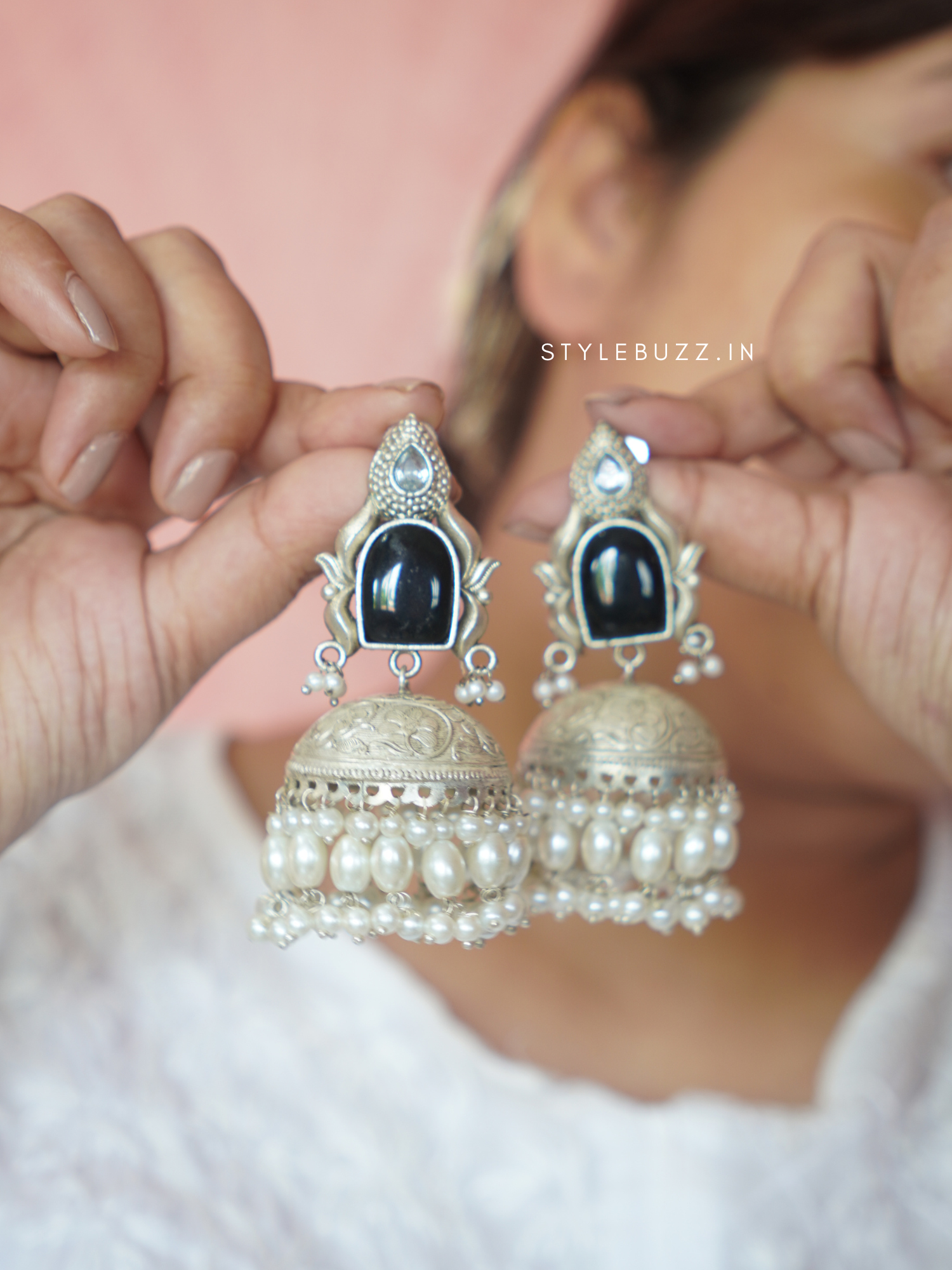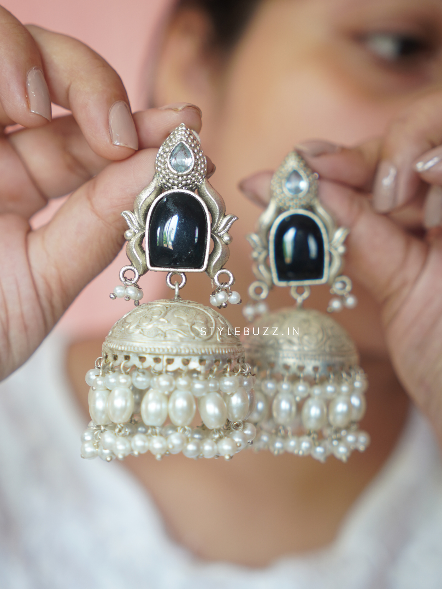 Premium Oversized Light Weight Silver Replica BlackJhumka